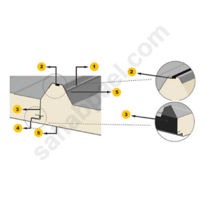 این ساندویچ پانل به دلیل شکل ظاهری ذوزقه ای خود و ایجاد اورلپ برروی یکدیگر تنها با پیچ مخصوص واشر دار کاملا آب بندی می شود .